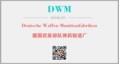 英文缩略词“DWM”经常作为“Deutsche Waffen Munitionfabriken”的英文缩写来使用,中文表示:“德国武装部队弹药制造厂”。本文将详细介绍英文缩写词DWM所代表英文单词,其对应的中文拼音、详细解释以及在英语中的流行度。此外,还有关于缩略词DWM的分类、应用领域及相关应用示例等。
