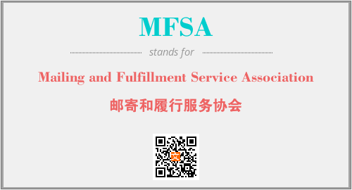 英文缩略词“MFSA”经常作为“Mailing and Fulfillment Service Association”的英文缩写来使用,中文表示:“邮寄和履行服务协会”。本文将详细介绍英文缩写词MFSA所代表英文单词,其对应的中文拼音、详细解释以及在英语中的流行度。此外,还有关于缩略词MFSA的分类、应用领域及相关应用示例等。