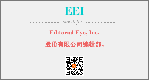 上述内容是“Editorial Eye, Inc.”作为“EEI”的缩写,解释为“股份有限公司编辑部。”时的信息,以及英文缩略词EEI所代表的英文单词,其对应的中文拼音、详细解释以及在英文中的流行度和相关分类、应用领域及应用示例等。