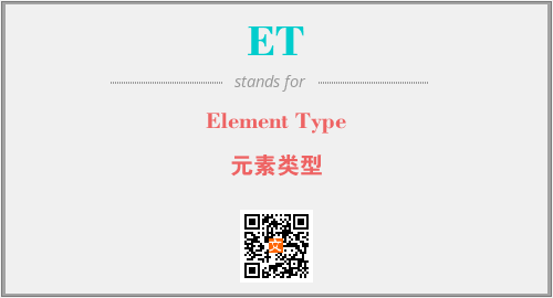 英文缩略词“ET”经常作为“Element Type”的英文缩写来使用,中文表示:“元素类型”。本文将详细介绍英文缩写词ET所代表英文单词,其对应的中文拼音、详细解释以及在英语中的流行度。此外,还有关于缩略词ET的分类、应用领域及相关应用示例等。