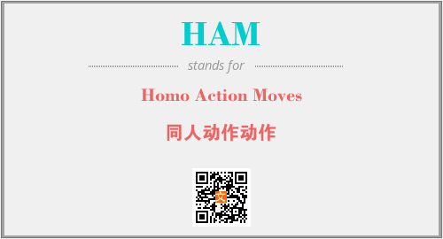 上述内容是“Homo Action Moves”作为“HAM”的缩写,解释为“同人动作动作”时的信息,以及英文缩略词HAM所代表的英文单词,其对应的中文拼音、详细解释以及在英文中的流行度和相关分类、应用领域及应用示例等。