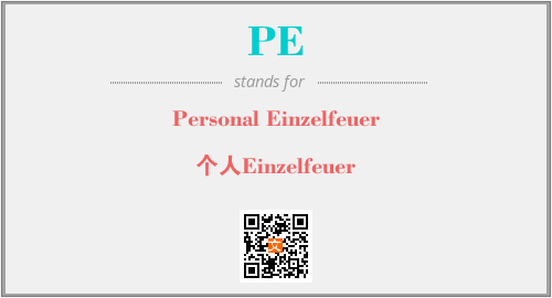 英文缩略词“PE”经常作为“Personal Einzelfeuer”的英文缩写来使用,中文表示:“个人Einzelfeuer”。本文将详细介绍英文缩写词PE所代表英文单词,其对应的中文拼音、详细解释以及在英语中的流行度。此外,还有关于缩略词PE的分类、应用领域及相关应用示例等。