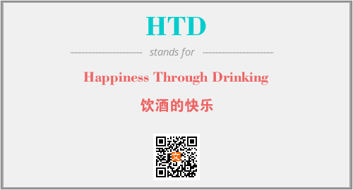 上述内容是“Happiness Through Drinking”作为“HTD”的缩写,解释为“饮酒的快乐”时的信息,以及英文缩略词HTD所代表的英文单词,其对应的中文拼音、详细解释以及在英文中的流行度和相关分类、应用领域及应用示例等。