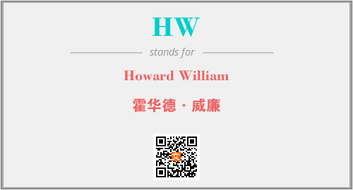 上述内容是“Howard William”作为“HW”的缩写,解释为“霍华德·威廉”时的信息,以及英文缩略词HW所代表的英文单词,其对应的中文拼音、详细解释以及在英文中的流行度和相关分类、应用领域及应用示例等。