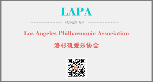 上述内容是“Los Angeles Philharmonic Association”作为“LAPA”的缩写,解释为“洛杉矶爱乐协会”时的信息,以及英文缩略词LAPA所代表的英文单词,其对应的中文拼音、详细解释以及在英文中的流行度和相关分类、应用领域及应用示例等。