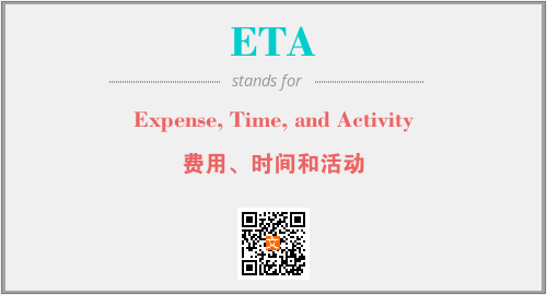 上述内容是“Expense, Time, and Activity”作为“ETA”的缩写,解释为“费用、时间和活动”时的信息,以及英文缩略词ETA所代表的英文单词,其对应的中文拼音、详细解释以及在英文中的流行度和相关分类、应用领域及应用示例等。