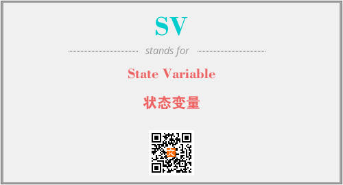 上述内容是“State Variable”作为“SV”的缩写,解释为“状态变量”时的信息,以及英文缩略词SV所代表的英文单词,其对应的中文拼音、详细解释以及在英文中的流行度和相关分类、应用领域及应用示例等。