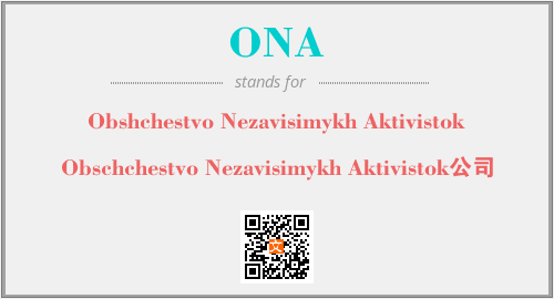 上述内容是“Obshchestvo Nezavisimykh Aktivistok”作为“ONA”的缩写,解释为“Obschchestvo Nezavisimykh Aktivistok公司”时的信息,以及英文缩略词ONA所代表的英文单词,其对应的中文拼音、详细解释以及在英文中的流行度和相关分类、应用领域及应用示例等。