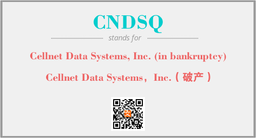 上述内容是“Cellnet Data Systems, Inc. (in bankruptcy)”作为“CNDSQ”的缩写,解释为“Cellnet Data Systems,Inc.(破产)”时的信息,以及英文缩略词CNDSQ所代表的英文单词,其对应的中文拼音、详细解释以及在英文中的流行度和相关分类、应用领域及应用示例等。