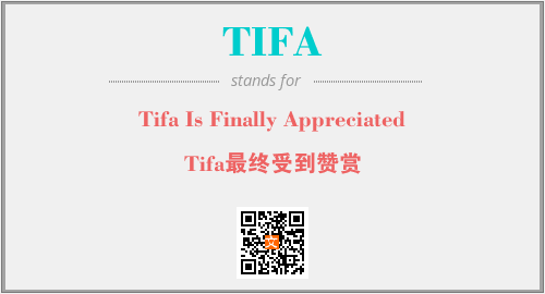 上述内容是“Tifa Is Finally Appreciated”作为“TIFA”的缩写,解释为“Tifa最终受到赞赏”时的信息,以及英文缩略词TIFA所代表的英文单词,其对应的中文拼音、详细解释以及在英文中的流行度和相关分类、应用领域及应用示例等。
