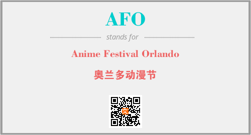 英文缩略词“AFO”经常作为“Anime Festival Orlando”的英文缩写来使用,中文表示:“奥兰多动漫节”。本文将详细介绍英文缩写词AFO所代表英文单词,其对应的中文拼音、详细解释以及在英语中的流行度。此外,还有关于缩略词AFO的分类、应用领域及相关应用示例等。