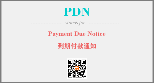 英文缩略词“PDN”经常作为“Payment Due Notice”的英文缩写来使用,中文表示:“到期付款通知”。本文将详细介绍英文缩写词PDN所代表英文单词,其对应的中文拼音、详细解释以及在英语中的流行度。此外,还有关于缩略词PDN的分类、应用领域及相关应用示例等。