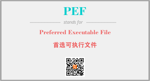 英文缩略词“PEF”经常作为“Preferred Executable File”的英文缩写来使用,中文表示:“首选可执行文件”。本文将详细介绍英文缩写词PEF所代表英文单词,其对应的中文拼音、详细解释以及在英语中的流行度。此外,还有关于缩略词PEF的分类、应用领域及相关应用示例等。