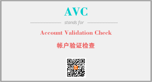 英文缩略词“AVC”经常作为“Account Validation Check”的英文缩写来使用,中文表示:“帐户验证检查”。本文将详细介绍英文缩写词AVC所代表英文单词,其对应的中文拼音、详细解释以及在英语中的流行度。此外,还有关于缩略词AVC的分类、应用领域及相关应用示例等。