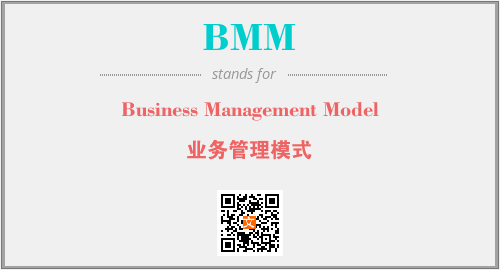英文缩略词“BMM”经常作为“Business Management Model”的英文缩写来使用,中文表示:“业务管理模式”。本文将详细介绍英文缩写词BMM所代表英文单词,其对应的中文拼音、详细解释以及在英语中的流行度。此外,还有关于缩略词BMM的分类、应用领域及相关应用示例等。