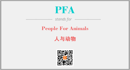 英文缩略词“PFA”经常作为“People For Animals”的英文缩写来使用,中文表示:“人与动物”。本文将详细介绍英文缩写词PFA所代表英文单词,其对应的中文拼音、详细解释以及在英语中的流行度。此外,还有关于缩略词PFA的分类、应用领域及相关应用示例等。