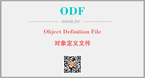 英文缩略词“ODF”经常作为“Object Definition File”的英文缩写来使用,中文表示:“对象定义文件”。本文将详细介绍英文缩写词ODF所代表英文单词,其对应的中文拼音、详细解释以及在英语中的流行度。此外,还有关于缩略词ODF的分类、应用领域及相关应用示例等。