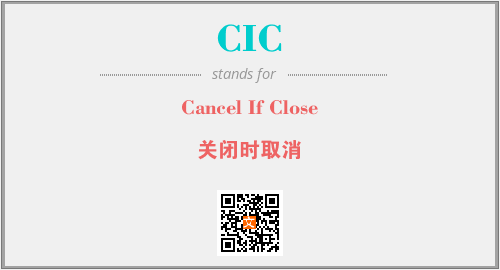 英文缩略词“CIC”经常作为“Cancel If Close”的英文缩写来使用,中文表示:“关闭时取消”。本文将详细介绍英文缩写词CIC所代表英文单词,其对应的中文拼音、详细解释以及在英语中的流行度。此外,还有关于缩略词CIC的分类、应用领域及相关应用示例等。