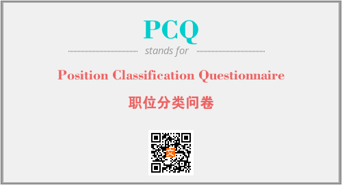 上述内容是“Position Classification Questionnaire”作为“PCQ”的缩写,解释为“职位分类问卷”时的信息,以及英文缩略词PCQ所代表的英文单词,其对应的中文拼音、详细解释以及在英文中的流行度和相关分类、应用领域及应用示例等。