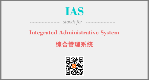 英文缩略词“IAS”经常作为“Integrated Administrative System”的英文缩写来使用,中文表示:“综合管理系统”。本文将详细介绍英文缩写词IAS所代表英文单词,其对应的中文拼音、详细解释以及在英语中的流行度。此外,还有关于缩略词IAS的分类、应用领域及相关应用示例等。