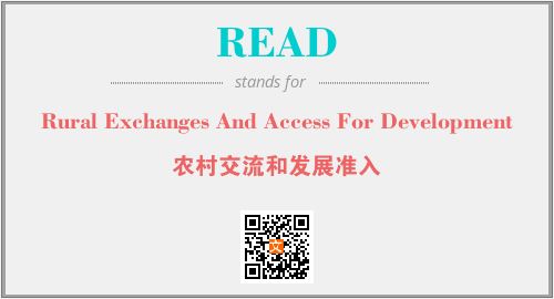 上述内容是“Rural Exchanges And Access For Development”作为“READ”的缩写,解释为“农村交流和发展准入”时的信息,以及英文缩略词READ所代表的英文单词,其对应的中文拼音、详细解释以及在英文中的流行度和相关分类、应用领域及应用示例等。