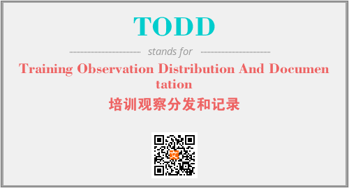 上述内容是“Training Observation Distribution And Documentation”作为“TODD”的缩写,解释为“培训观察分发和记录”时的信息,以及英文缩略词TODD所代表的英文单词,其对应的中文拼音、详细解释以及在英文中的流行度和相关分类、应用领域及应用示例等。
