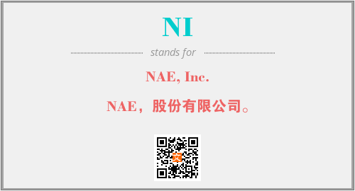 上述内容是“NAE, Inc.”作为“NI”的缩写,解释为“NAE,股份有限公司。”时的信息,以及英文缩略词NI所代表的英文单词,其对应的中文拼音、详细解释以及在英文中的流行度和相关分类、应用领域及应用示例等。