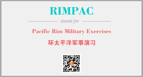 上述内容是“Pacific Rim Military Exercises”作为“RIMPAC”的缩写,解释为“环太平洋军事演习”时的信息,以及英文缩略词RIMPAC所代表的英文单词,其对应的中文拼音、详细解释以及在英文中的流行度和相关分类、应用领域及应用示例等。