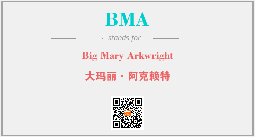 上述内容是“Big Mary Arkwright”作为“BMA”的缩写,解释为“大玛丽·阿克赖特”时的信息,以及英文缩略词BMA所代表的英文单词,其对应的中文拼音、详细解释以及在英文中的流行度和相关分类、应用领域及应用示例等。