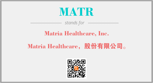 上述内容是“Matria Healthcare, Inc.”作为“MATR”的缩写,解释为“Matria Healthcare,股份有限公司。”时的信息,以及英文缩略词MATR所代表的英文单词,其对应的中文拼音、详细解释以及在英文中的流行度和相关分类、应用领域及应用示例等。