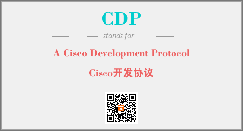 英文缩略词“CDP”经常作为“A Cisco Development Protocol”的英文缩写来使用,中文表示:“Cisco开发协议”。本文将详细介绍英文缩写词CDP所代表英文单词,其对应的中文拼音、详细解释以及在英语中的流行度。此外,还有关于缩略词CDP的分类、应用领域及相关应用示例等。