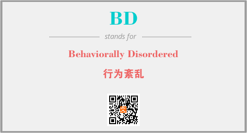 上述内容是“Behaviorally Disordered”作为“BD”的缩写,解释为“行为紊乱”时的信息,以及英文缩略词BD所代表的英文单词,其对应的中文拼音、详细解释以及在英文中的流行度和相关分类、应用领域及应用示例等。