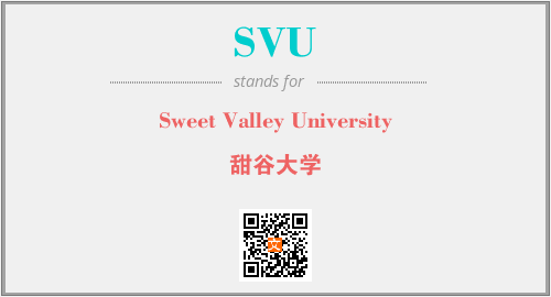 以上为Sweet Valley University英文缩略词SVU的中文解释,以及该英文缩写在英语的流行度、分类和应用领域方面的信息。