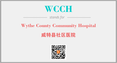 英文缩略词“WCCH”经常作为“Wythe County Community Hospital”的英文缩写来使用,中文表示:“威特县社区医院”。本文将详细介绍英文缩写词WCCH所代表英文单词,其对应的中文拼音、详细解释以及在英语中的流行度。此外,还有关于缩略词WCCH的分类、应用领域及相关应用示例等。