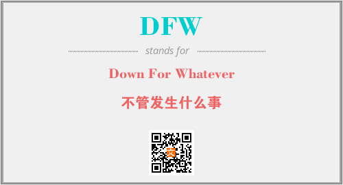 以上为Down For Whatever英文缩略词DFW的中文解释,以及该英文缩写在英语的流行度、分类和应用领域方面的信息。