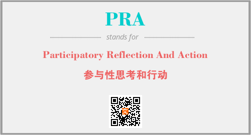 以上为Participatory Reflection And Action英文缩略词PRA的中文解释,以及该英文缩写在英语的流行度、分类和应用领域方面的信息。