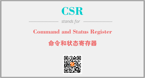 英文缩略词“CSR”经常作为“Command and Status Register”的英文缩写来使用,中文表示:“命令和状态寄存器”。本文将详细介绍英文缩写词CSR所代表英文单词,其对应的中文拼音、详细解释以及在英语中的流行度。此外,还有关于缩略词CSR的分类、应用领域及相关应用示例等。