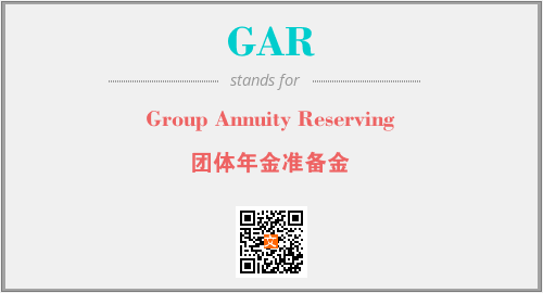 上述内容是“Group Annuity Reserving”作为“GAR”的缩写,解释为“团体年金准备金”时的信息,以及英文缩略词GAR所代表的英文单词,其对应的中文拼音、详细解释以及在英文中的流行度和相关分类、应用领域及应用示例等。