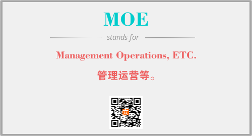 上述内容是“Management Operations, ETC.”作为“MOE”的缩写,解释为“管理运营等。”时的信息,以及英文缩略词MOE所代表的英文单词,其对应的中文拼音、详细解释以及在英文中的流行度和相关分类、应用领域及应用示例等。