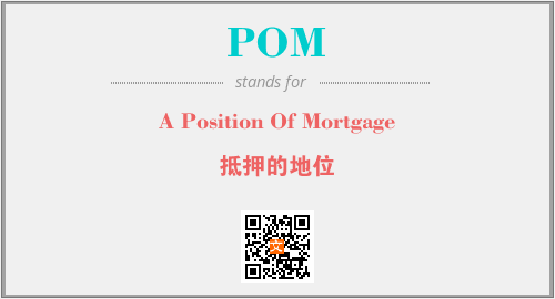 上述内容是“A Position Of Mortgage”作为“POM”的缩写,解释为“抵押的地位”时的信息,以及英文缩略词POM所代表的英文单词,其对应的中文拼音、详细解释以及在英文中的流行度和相关分类、应用领域及应用示例等。