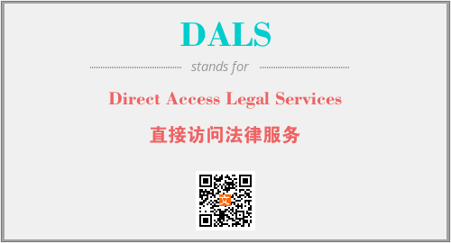 英文缩略词“DALS”经常作为“Direct Access Legal Services”的英文缩写来使用,中文表示:“直接访问法律服务”。本文将详细介绍英文缩写词DALS所代表英文单词,其对应的中文拼音、详细解释以及在英语中的流行度。此外,还有关于缩略词DALS的分类、应用领域及相关应用示例等。