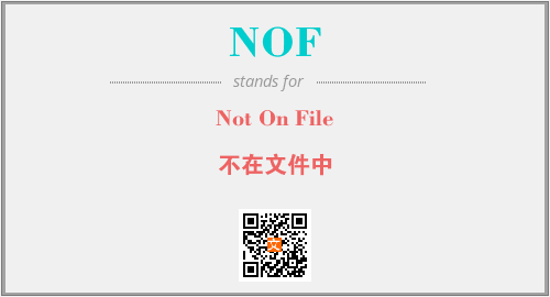 英文缩略词“NOF”经常作为“Not On File”的英文缩写来使用,中文表示:“不在文件中”。本文将详细介绍英文缩写词NOF所代表英文单词,其对应的中文拼音、详细解释以及在英语中的流行度。此外,还有关于缩略词NOF的分类、应用领域及相关应用示例等。
