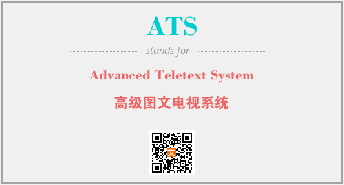 英文缩略词“ATS”经常作为“Advanced Teletext System”的英文缩写来使用,中文表示:“高级图文电视系统”。本文将详细介绍英文缩写词ATS所代表英文单词,其对应的中文拼音、详细解释以及在英语中的流行度。此外,还有关于缩略词ATS的分类、应用领域及相关应用示例等。