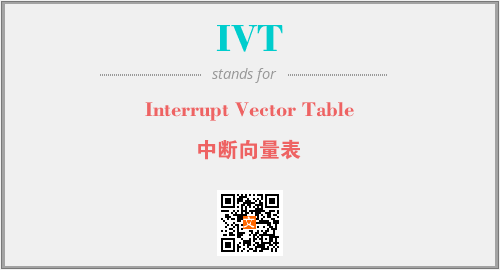 上述内容是“Interrupt Vector Table”作为“IVT”的缩写,解释为“中断向量表”时的信息,以及英文缩略词IVT所代表的英文单词,其对应的中文拼音、详细解释以及在英文中的流行度和相关分类、应用领域及应用示例等。