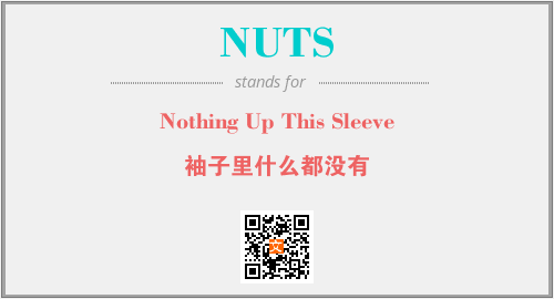 上述内容是“Nothing Up This Sleeve”作为“NUTS”的缩写,解释为“袖子里什么都没有”时的信息,以及英文缩略词NUTS所代表的英文单词,其对应的中文拼音、详细解释以及在英文中的流行度和相关分类、应用领域及应用示例等。