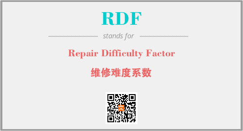 上述内容是“Repair Difficulty Factor”作为“RDF”的缩写,解释为“维修难度系数”时的信息,以及英文缩略词RDF所代表的英文单词,其对应的中文拼音、详细解释以及在英文中的流行度和相关分类、应用领域及应用示例等。