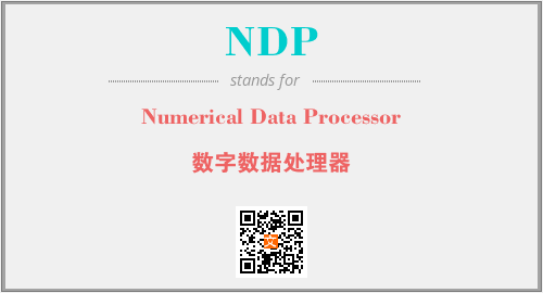 英文缩略词“NDP”经常作为“Numerical Data Processor”的英文缩写来使用,中文表示:“数字数据处理器”。本文将详细介绍英文缩写词NDP所代表英文单词,其对应的中文拼音、详细解释以及在英语中的流行度。此外,还有关于缩略词NDP的分类、应用领域及相关应用示例等。