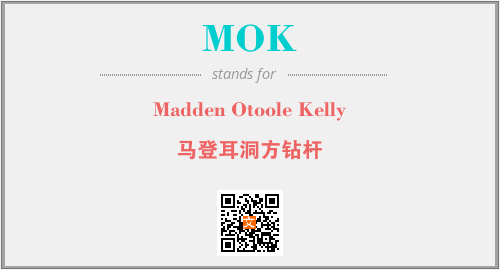 上述内容是“Madden Otoole Kelly”作为“MOK”的缩写,解释为“马登耳洞方钻杆”时的信息,以及英文缩略词MOK所代表的英文单词,其对应的中文拼音、详细解释以及在英文中的流行度和相关分类、应用领域及应用示例等。