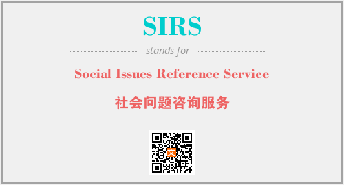 英文缩略词“SIRS”经常作为“Social Issues Reference Service”的英文缩写来使用,中文表示:“社会问题咨询服务”。本文将详细介绍英文缩写词SIRS所代表英文单词,其对应的中文拼音、详细解释以及在英语中的流行度。此外,还有关于缩略词SIRS的分类、应用领域及相关应用示例等。
