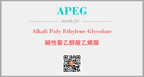 上述内容是“Alkali Poly Ethylene Glycolate”作为“APEG”的缩写,解释为“碱性聚乙醇酸乙烯酯”时的信息,以及英文缩略词APEG所代表的英文单词,其对应的中文拼音、详细解释以及在英文中的流行度和相关分类、应用领域及应用示例等。